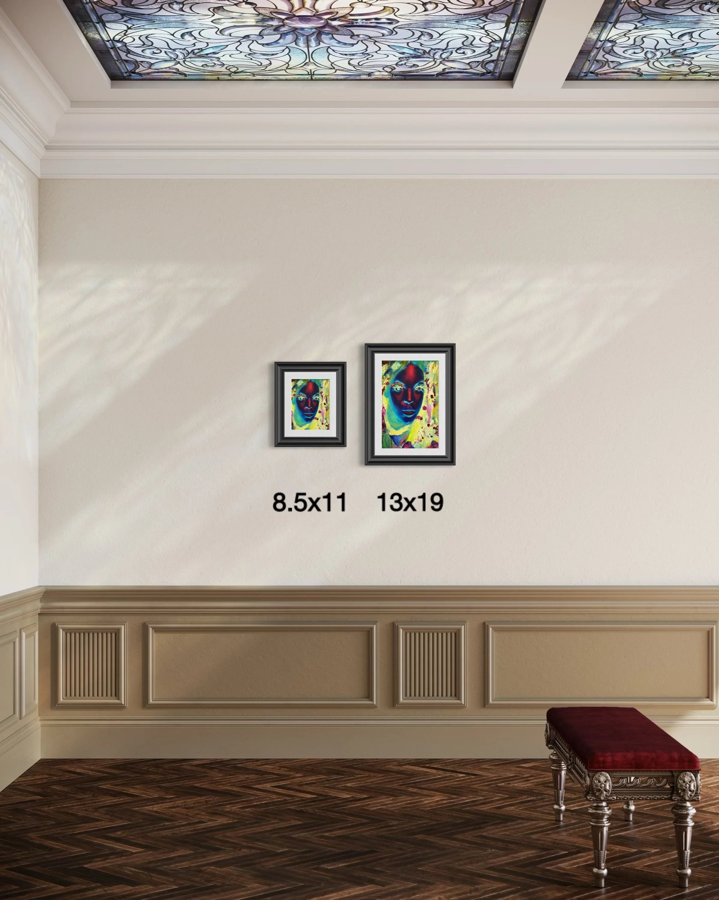 This print is available in the letter (8.5x11 inches) size with a luster finish for a vibrant and polished appearance. The visible paper grain adds a unique texture to the artwork, enhancing its authenticity. The frame and accessories are not included.