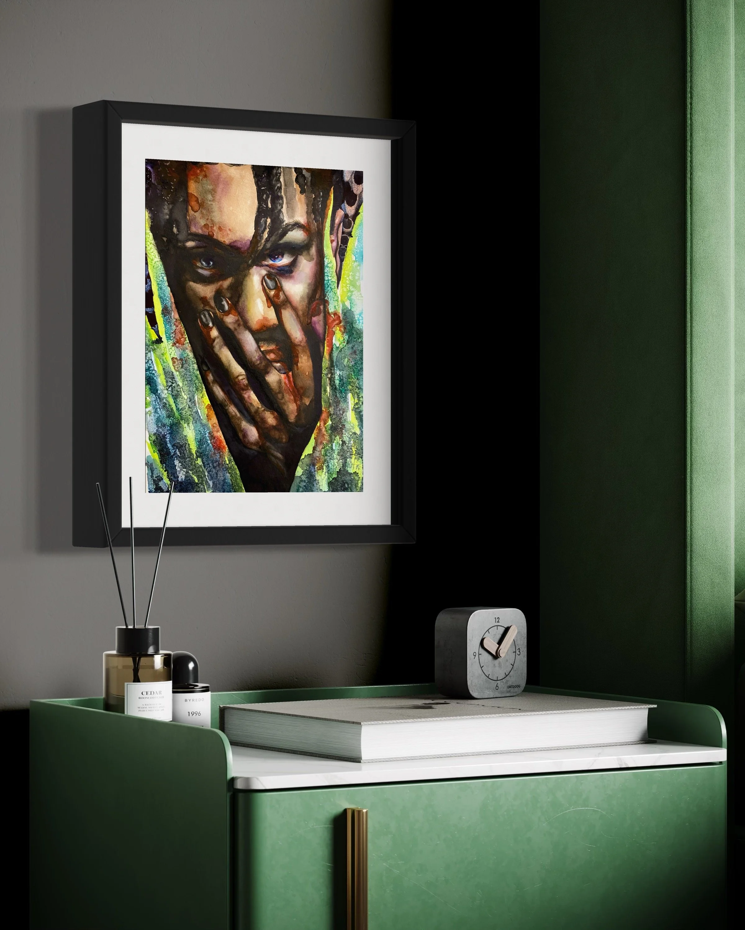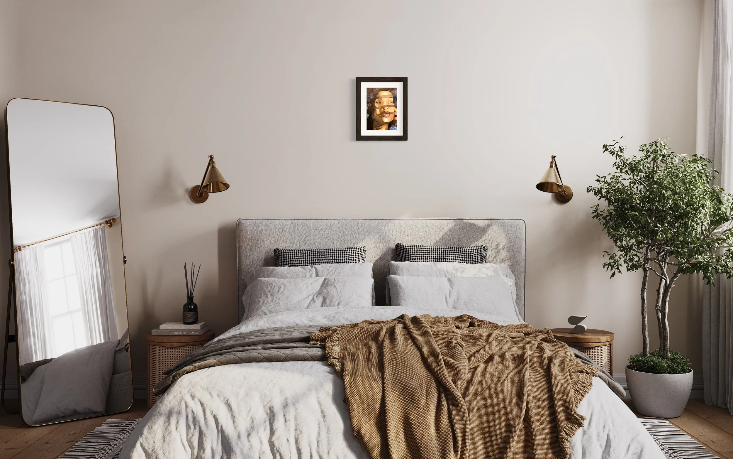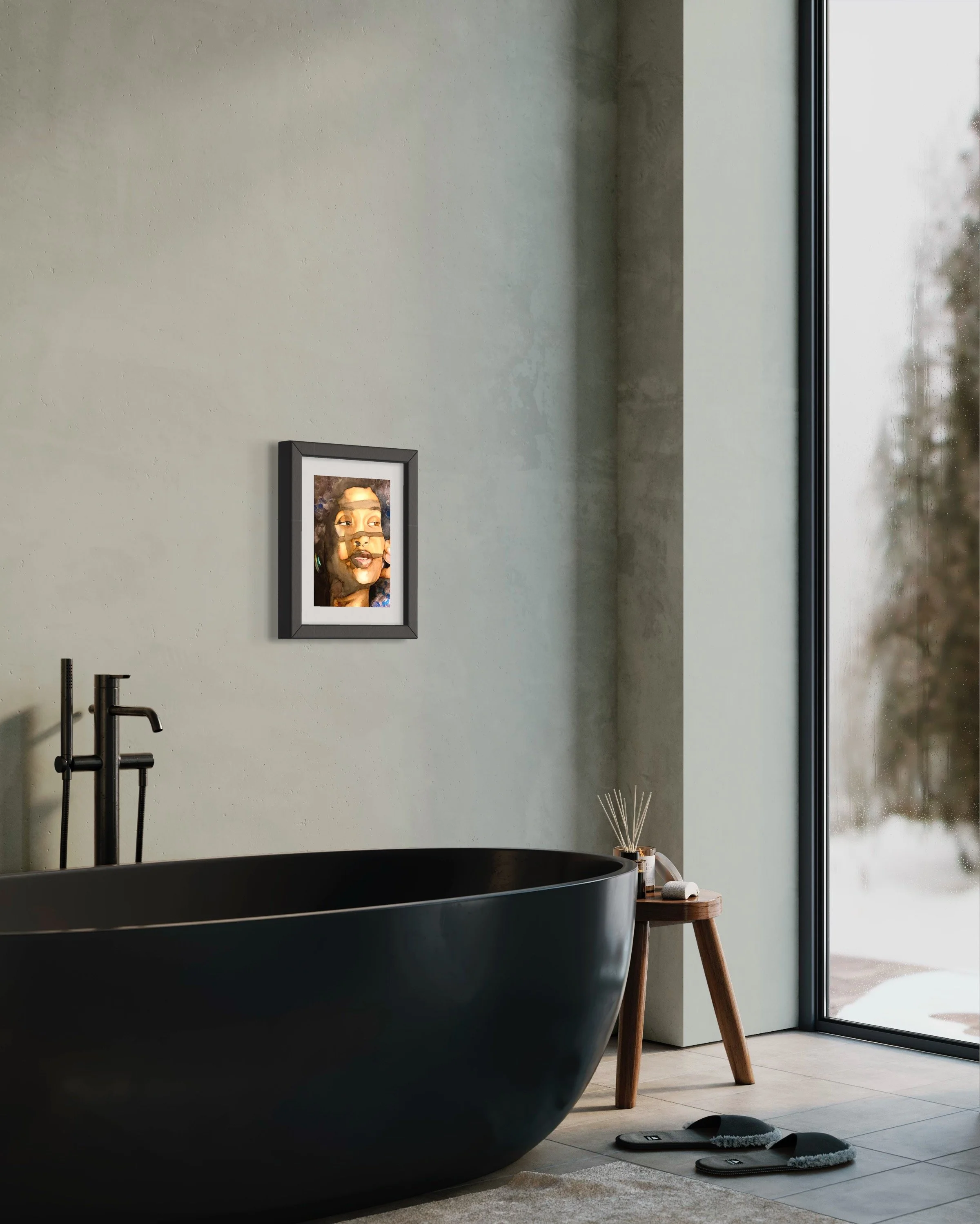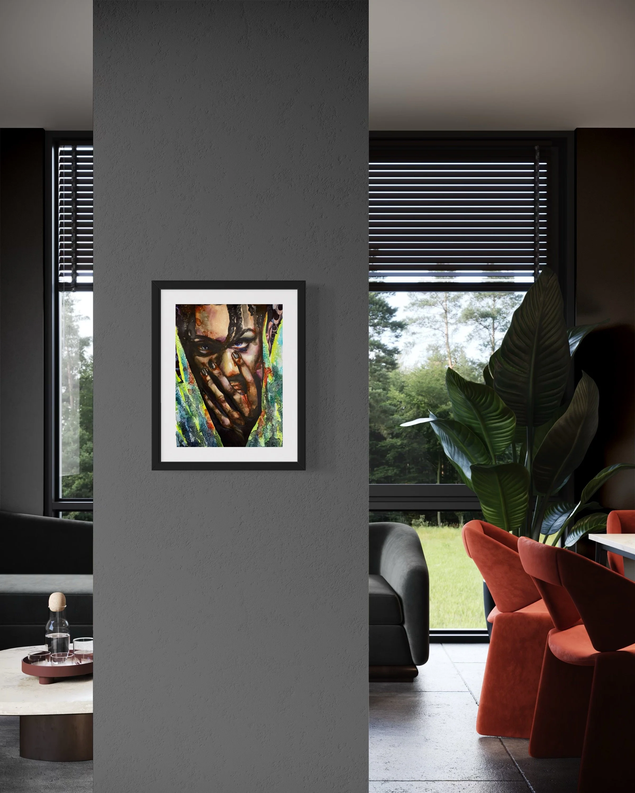 "Smile" print is available in 8.5x11 inches with a luster finish for a vibrant and polished appearance. The visible paper grain adds a unique texture to the artwork, enhancing its authenticity. The frame and accessories are not included.