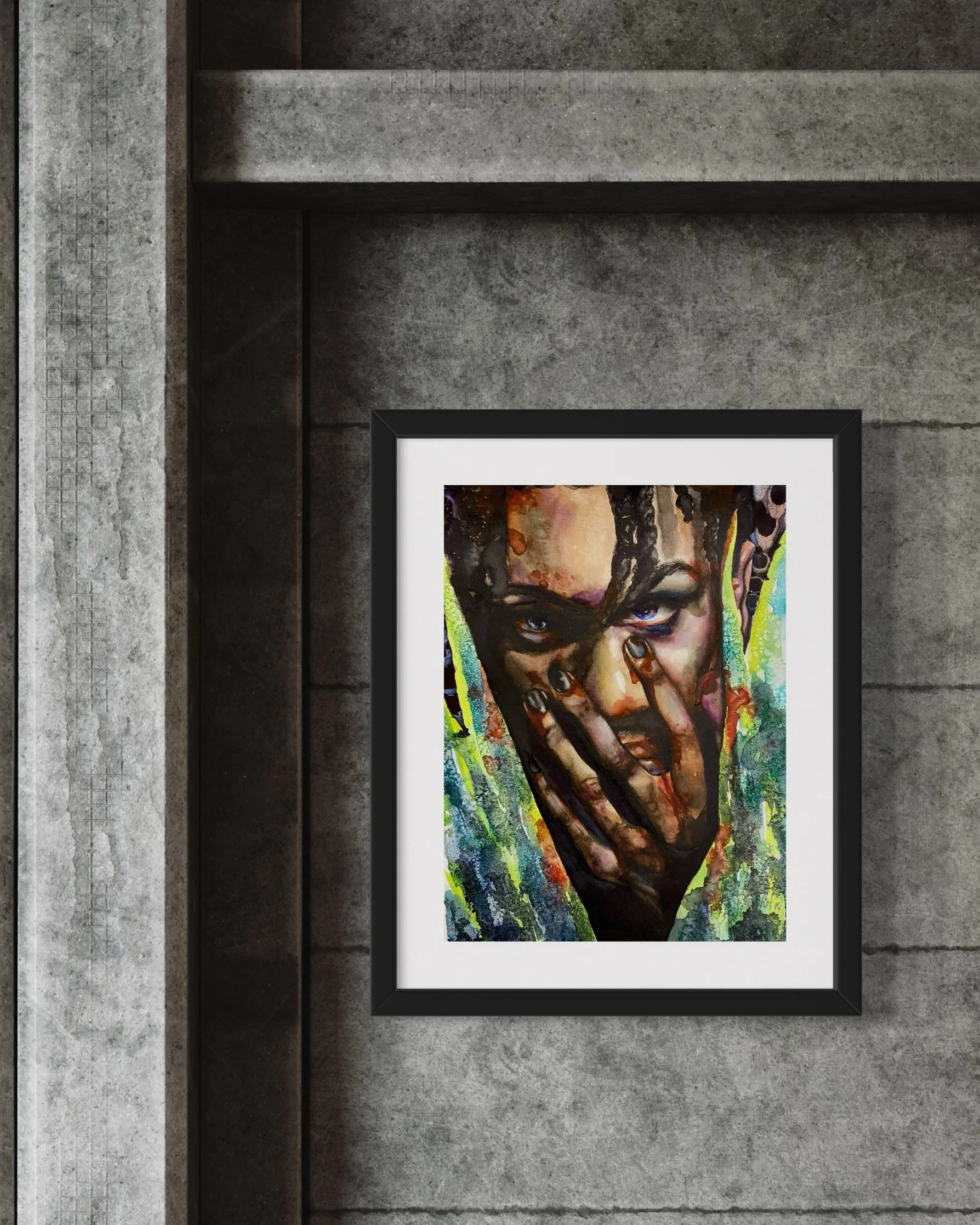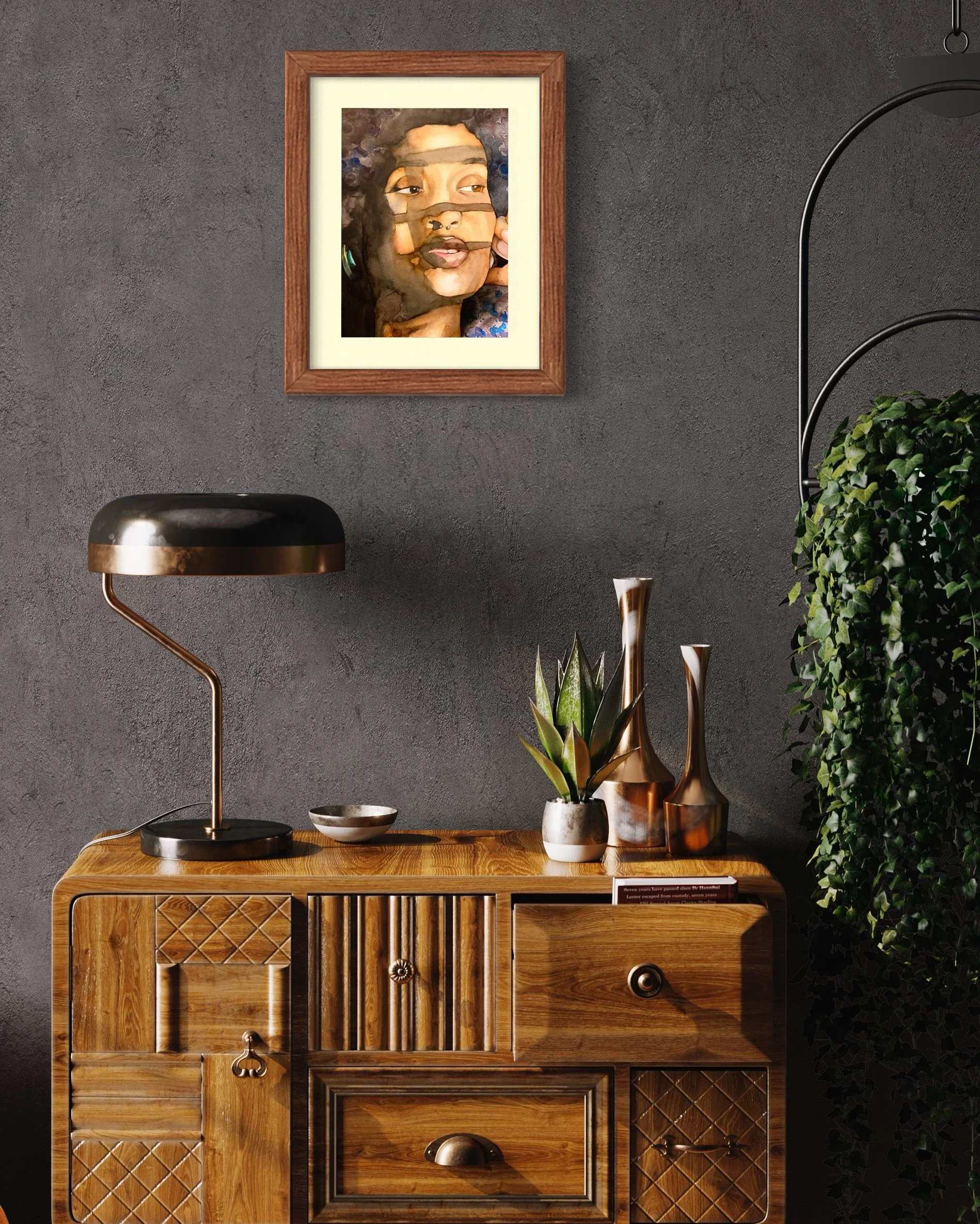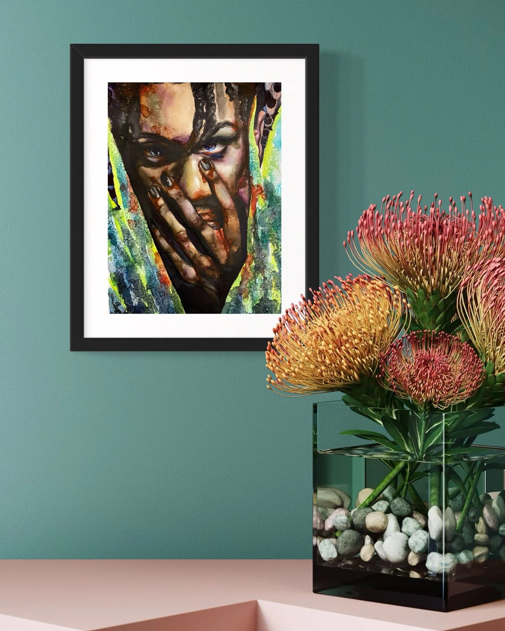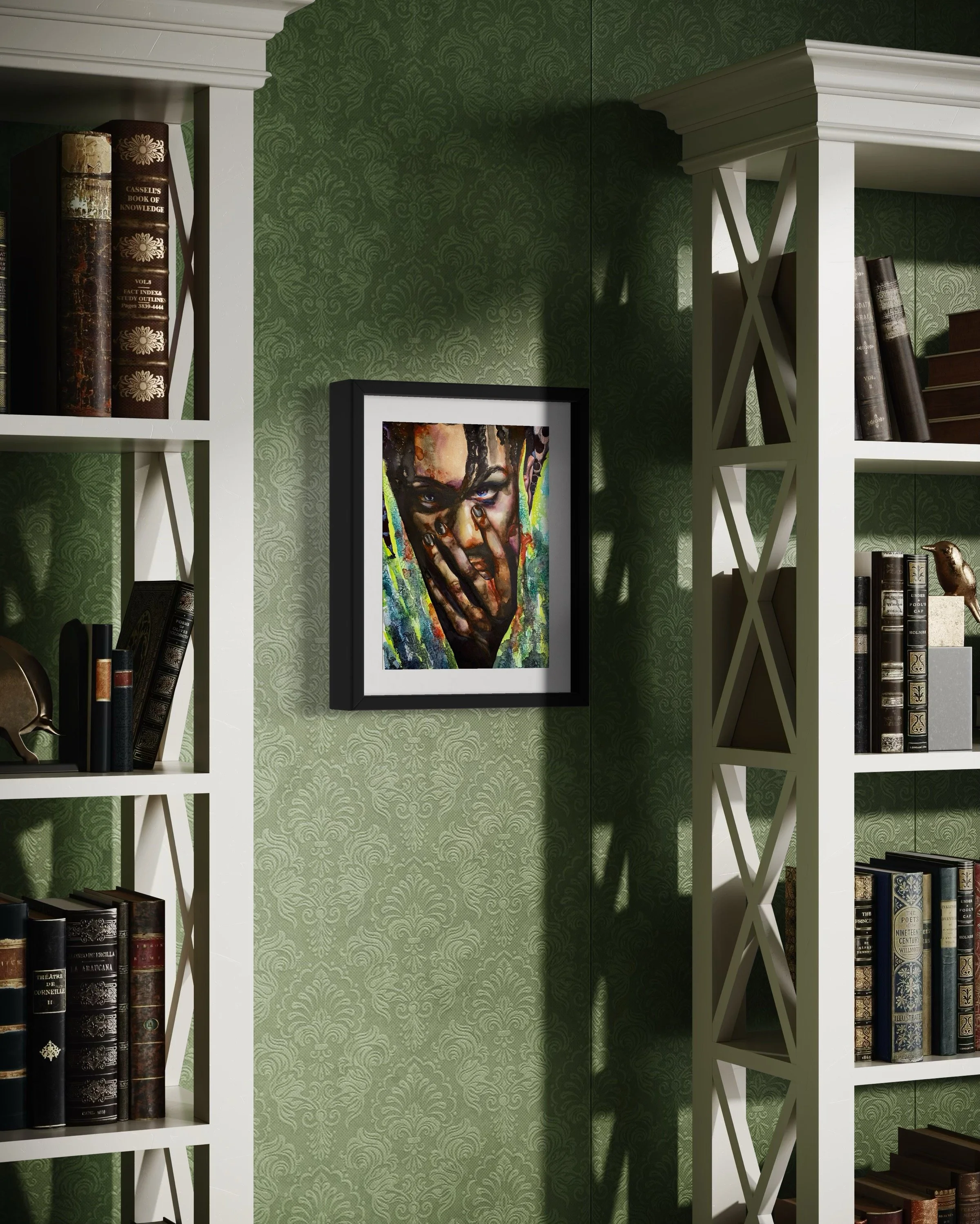 "Smile" print is available in 8.5x11 inches with a luster finish for a vibrant and polished appearance. The visible paper grain adds a unique texture to the artwork, enhancing its authenticity. The frame and accessories are not included.